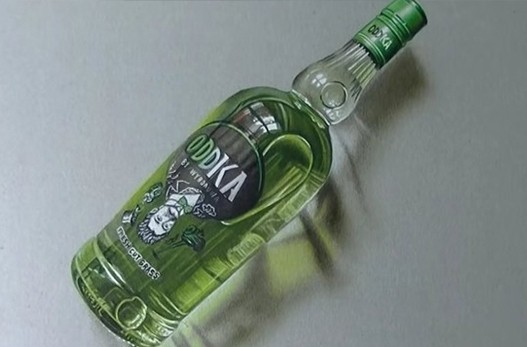 Un dessin hyperréaliste d'une bouteille d'alcool minute par minute